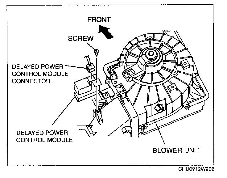 2. Disconnect the delayed power control module connector.