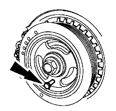 5. Turn the crankshaft pulley bolt to position the number one cylinder at top dead center and install the special tool.