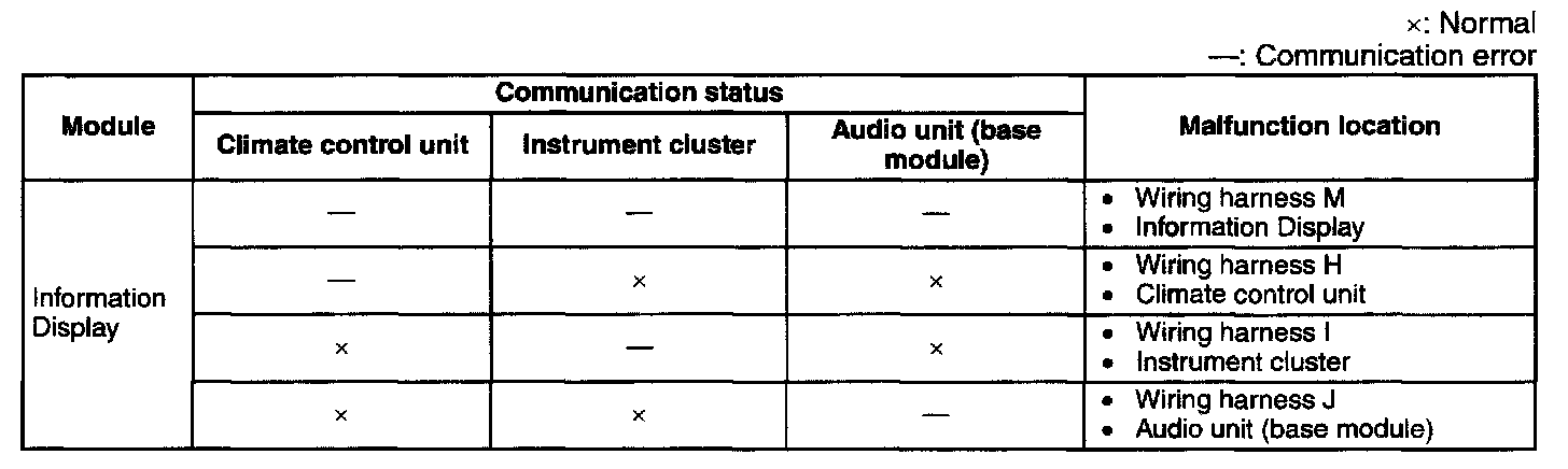 1. Inspect the display of DTC U0140, U0155 and/or U0184, using the M-MDS. (See DTC TABLE [MULTIPLEX COMMUNICATION SYSTEM].) Diagnostic Trouble Code Descriptions