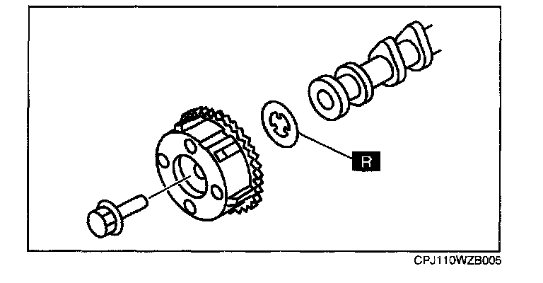 Note: Intake camshaft sprocket is integrated with the variable valve timing actuator and cannot be disassembled.