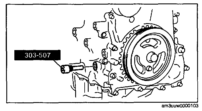 1. Remove the cylinder block lower blind plug and install the SST.