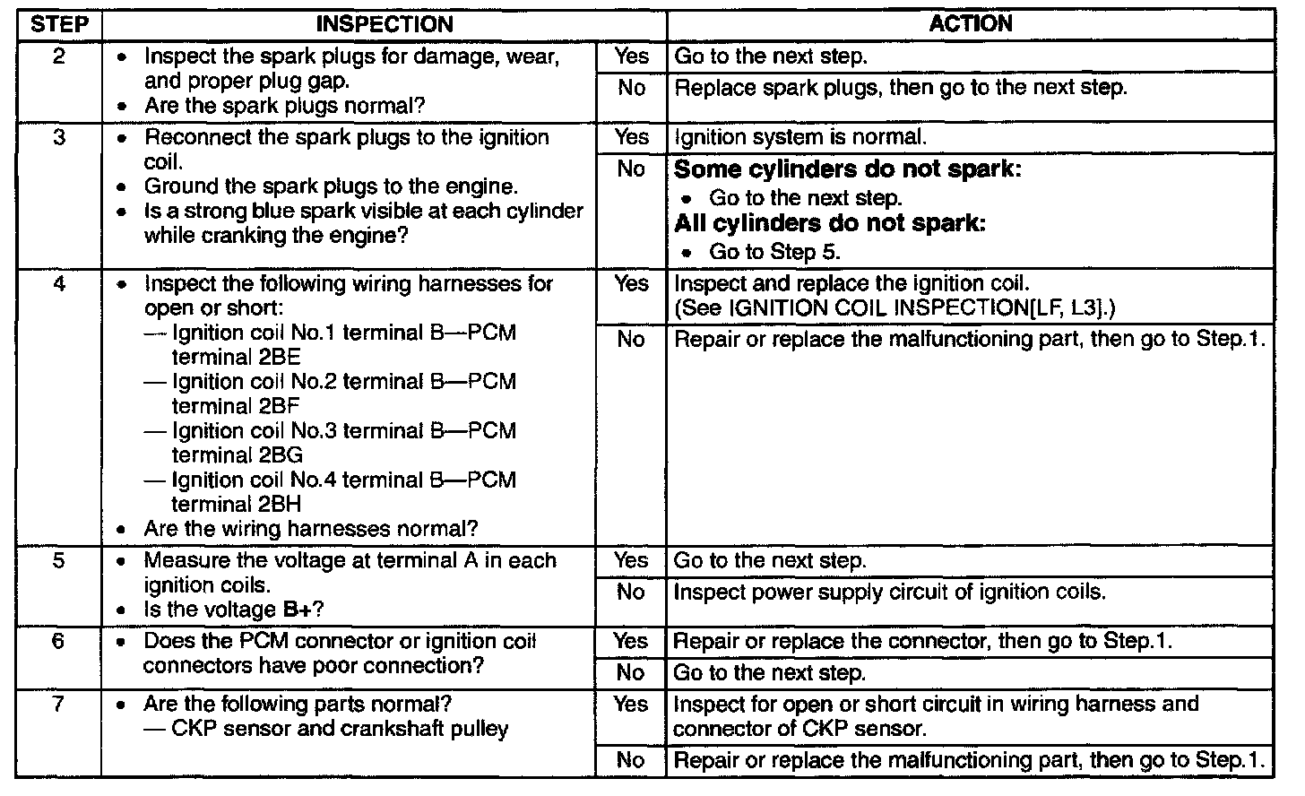 WARNING - High voltage in the ignition system can cause strong electrical shock which can result in serious injury. Avoid direct contact to the vehicle body during the following spark test.