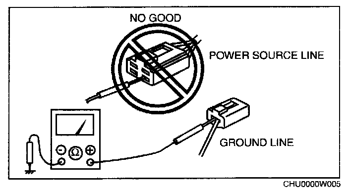 CAUTION: Do not connect a jumper wire from the power source line to a body ground. This may cause burning or other damage to wiring harnesses or electronic components.