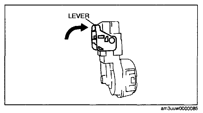 1. Rotate the lever in the direction of the arrow and remove the connector.