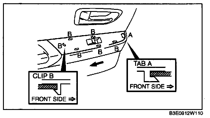 2. Remove the clips B using a flathead screwdriver wrapped with protective tape.