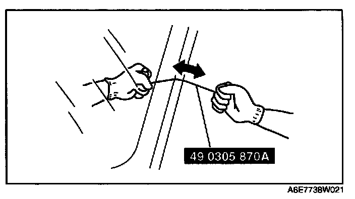 4. Fix one end of the SST (piano wire), and while pulling the other end, cut the sealant around the windshield.