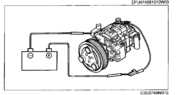 1. Connect battery positive voltage to magnetic clutch terminal A and the A/C compressor body to ground.