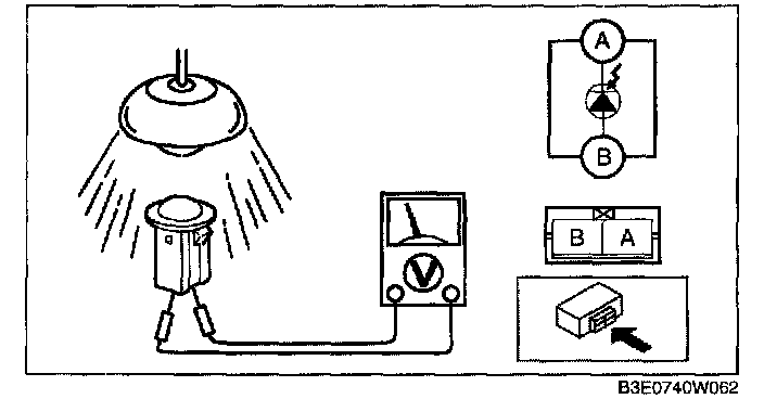 2. Using a tester, connect the positive (+) lead to solar radiation sensor terminal A, the negative (-) lead to terminal B and verify that the output voltage is approx. 0.45 V.