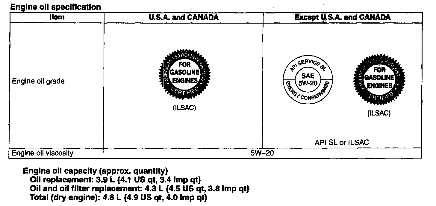 Total (dry engine): 4.6 L (4.9 US qt, 4.0 Imp qt)