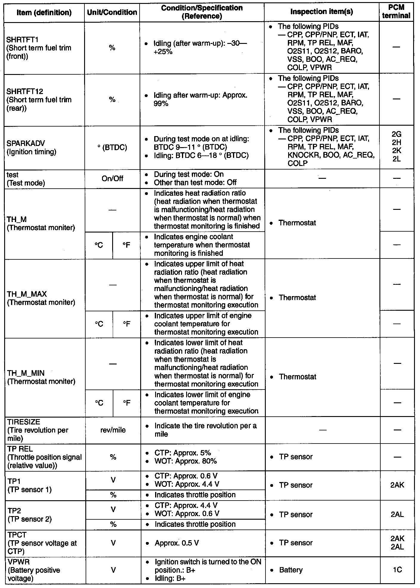 - The PID/DATA MONITOR function monitors the calculated value of the input/output signals in the PCM. Therefore, an output device malfunction is not directly indicated as a malfunction of the monitored value for the output device. If a monitored value of an output device is out of specification, inspect the monitored value of the input device related to the output control.