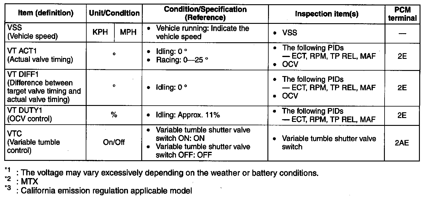 - If PID value is not within the specification, follow the instructions in Action column.