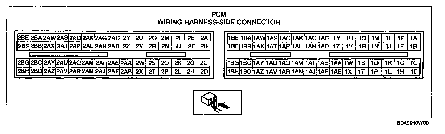 NOTE: The PCM terminal voltage can vary with the conditions when measuring and changes due to aged deterioration on the vehicle, causing false diagnosis. Therefore determine comprehensively where the malfunction occurs among the input systems, output systems, and the PCM.