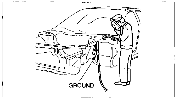 A vehicle has various electrical parts. To protect the parts from excessive current generated when welding, be sure to perform the following procedure.