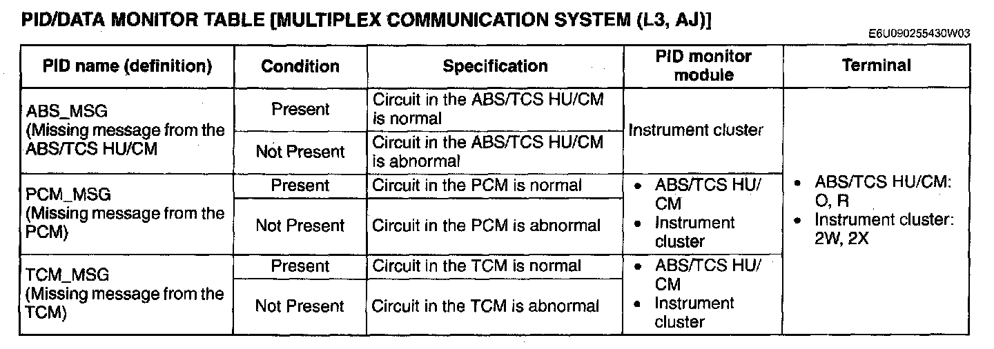PID/Data Monitor Table [Multiplex Communication System]: