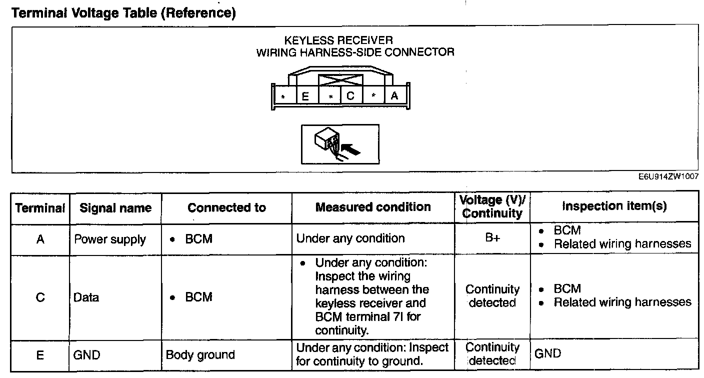 Home >> Mazda >> 2006 >> 6 L4-2.3L >> Repair and Diagnosis >> Body and Frame >> Locks >> Keyless Entry >> Keyless Entry Receiver >> Testing and Inspection