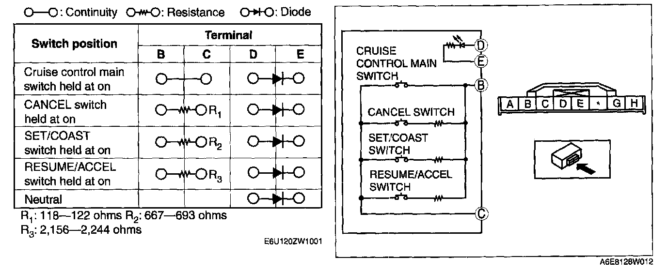 Home >> Mazda >> 2006 >> 6 L4-2.3L >> Repair and Diagnosis >> Cruise Control >> Cruise Control Switch >> Testing and Inspection