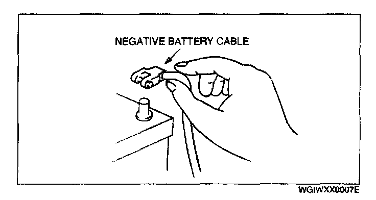 - Before disconnecting connectors or removing electrical parts, disconnect the negative battery cable.