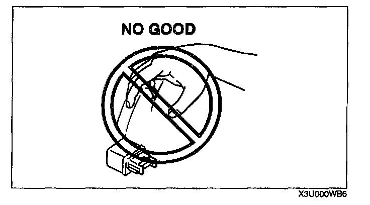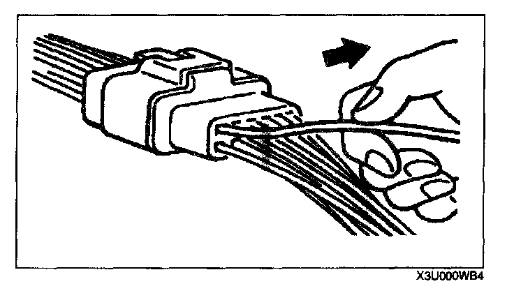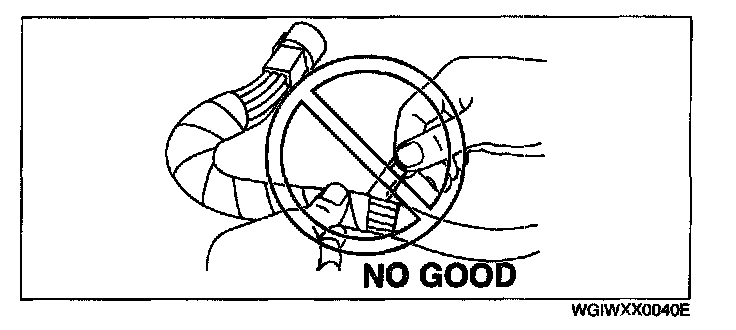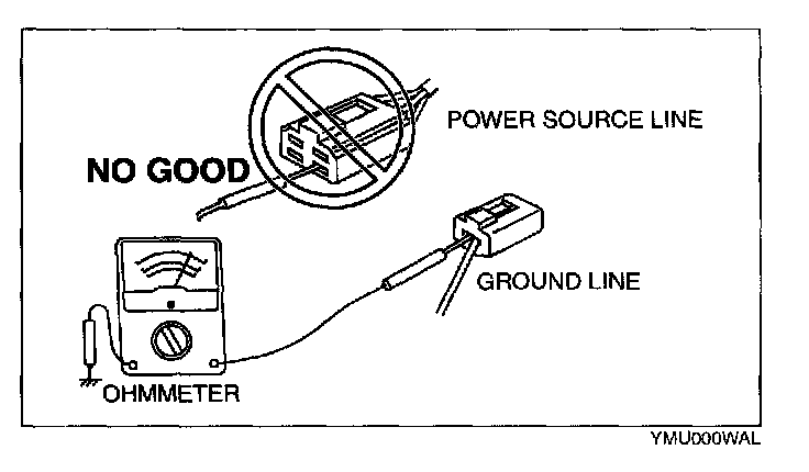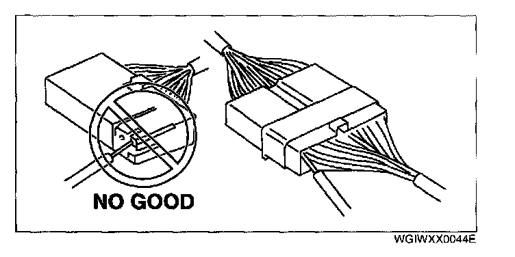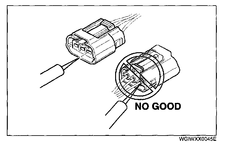 - When a tester is used to inspect for continuity or measuring voltage, insert the tester probe from the wiring harness side.