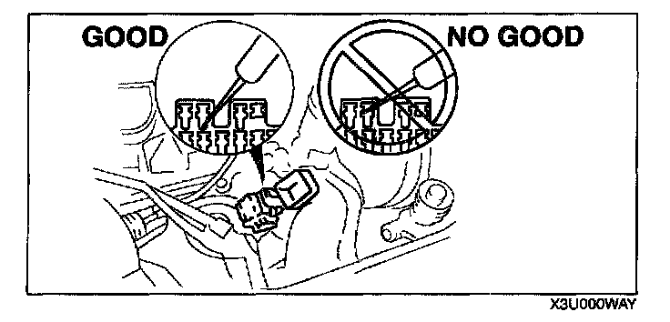 CAUTION: To prevent damage to the terminal, wrap a thin wire around the tester probe before inserting into terminal.