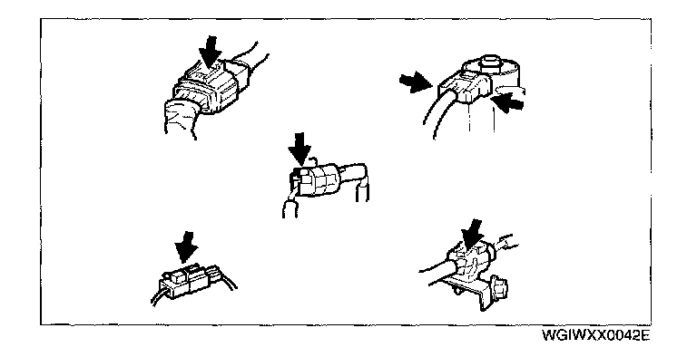 - Inspect the terminals of waterproof connectors from the connector side since they cannot be accessed from the wiring harness side.