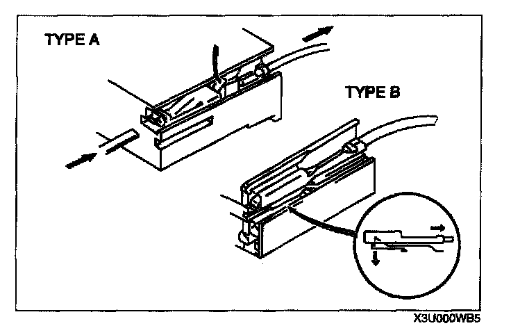 - Use the appropriate tools to remove a terminal as shown. When installing a terminal, be sure to insert it until it locks securely.