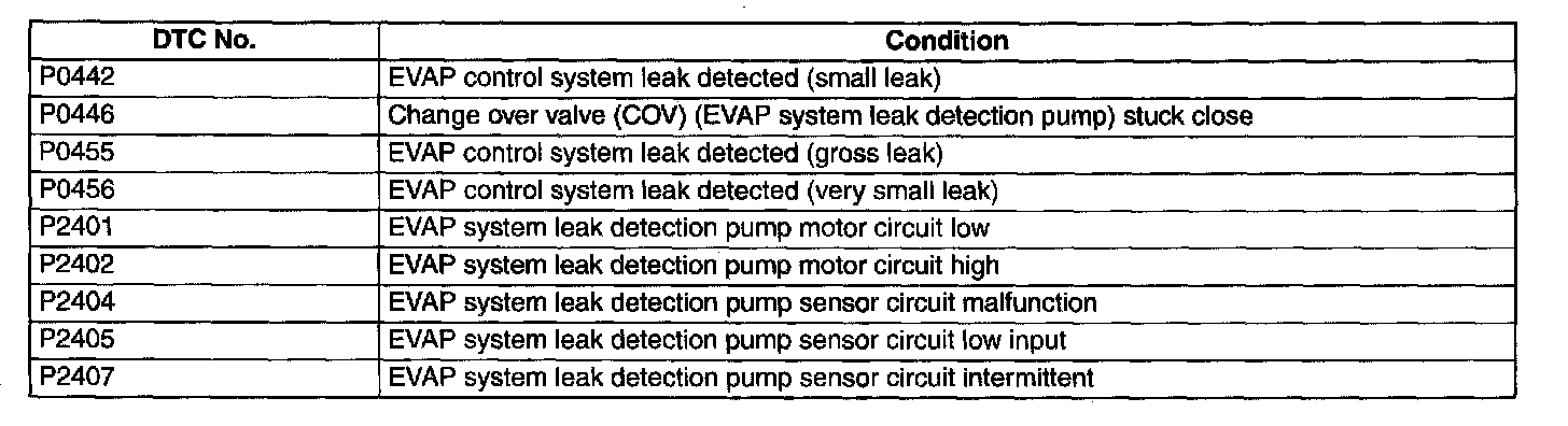 - The EVAP system test finds gas leaks in the system using the PCM to monitor changes in the air pump load current of the EVAP system leak detection pump. This test starts after sending an on-demand test signal from the WDS to the PCM. The PCM controls the air pump and change-over-valve operation and also stores the load current of the air pump as follows: