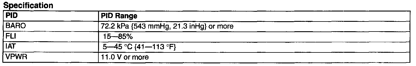 2. Verify that all of the following PIDs are within the specifications at the pre-test confirmation screen.