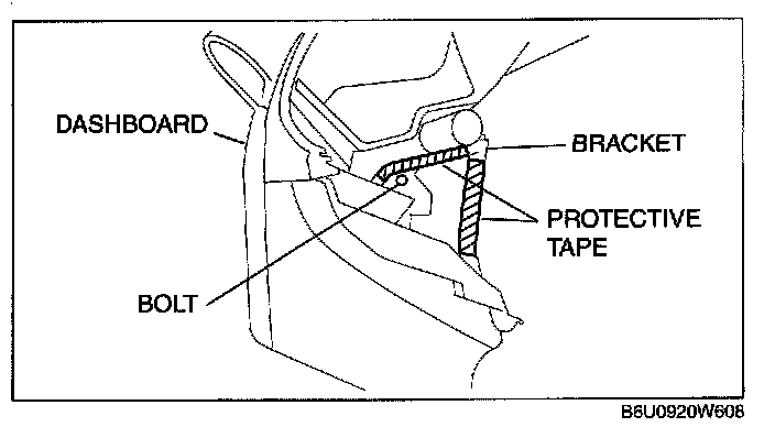 1. Attach protective tape to the bracket installed to the dashboard.
