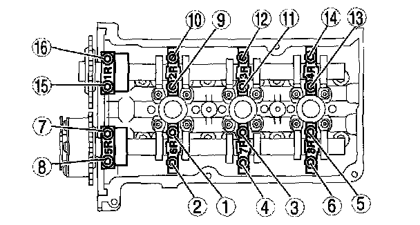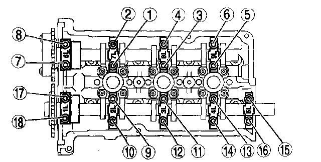Tighten the bearing caps evenly in the order shown in several passes