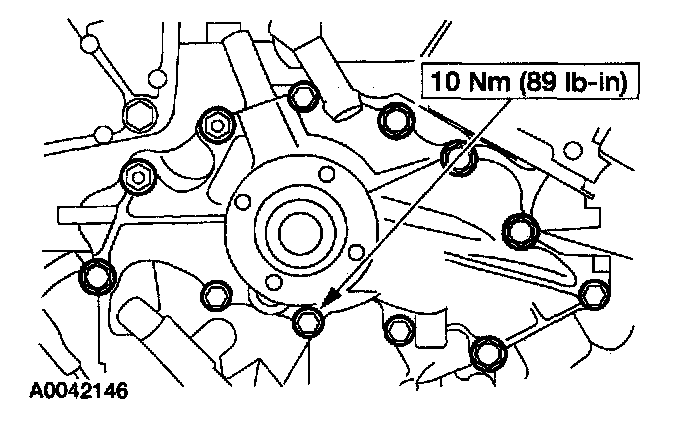 Install the six bolts. Tighten the bolts is a criss-cross pattern.