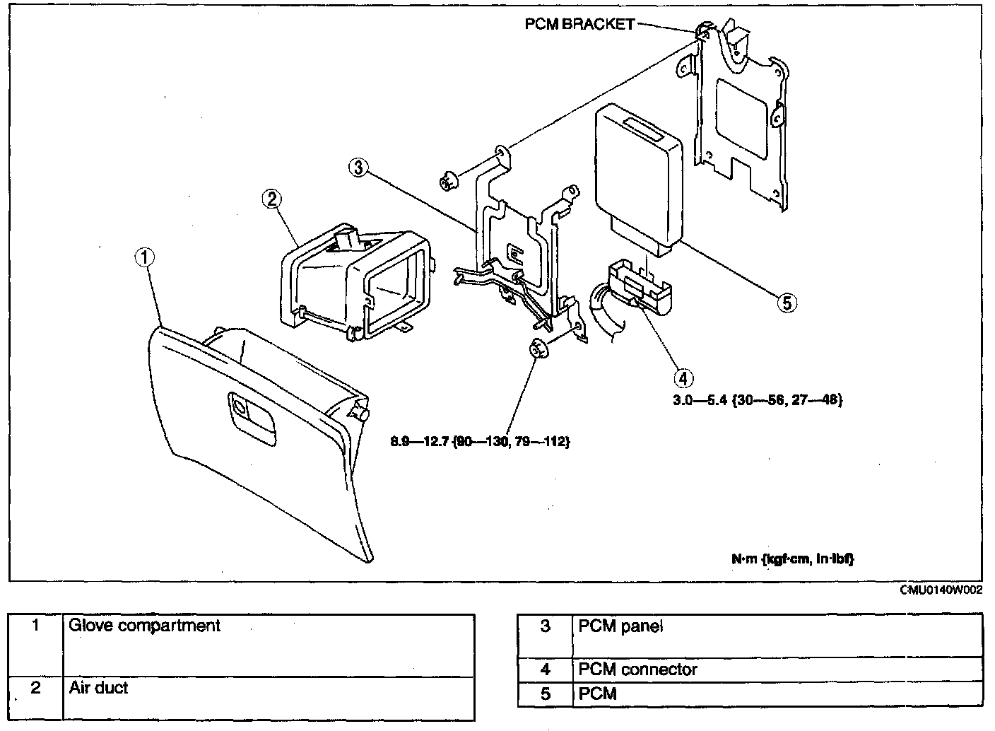 4. Remove four installation nuts, then pull the PCM panel down to remove from installation place.
