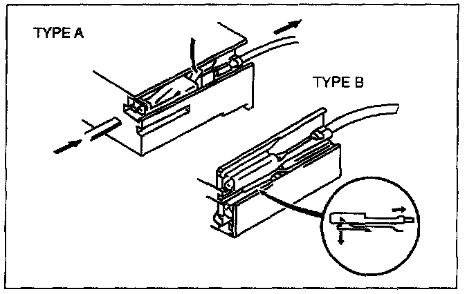 - Use the appropriate tools to remove a terminal as shown. When installing a terminal, be sure to insert it until it locks securely.