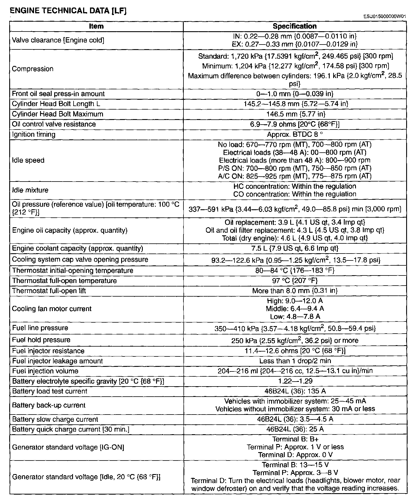 ENGINE TECHNICAL DATA [LF]: