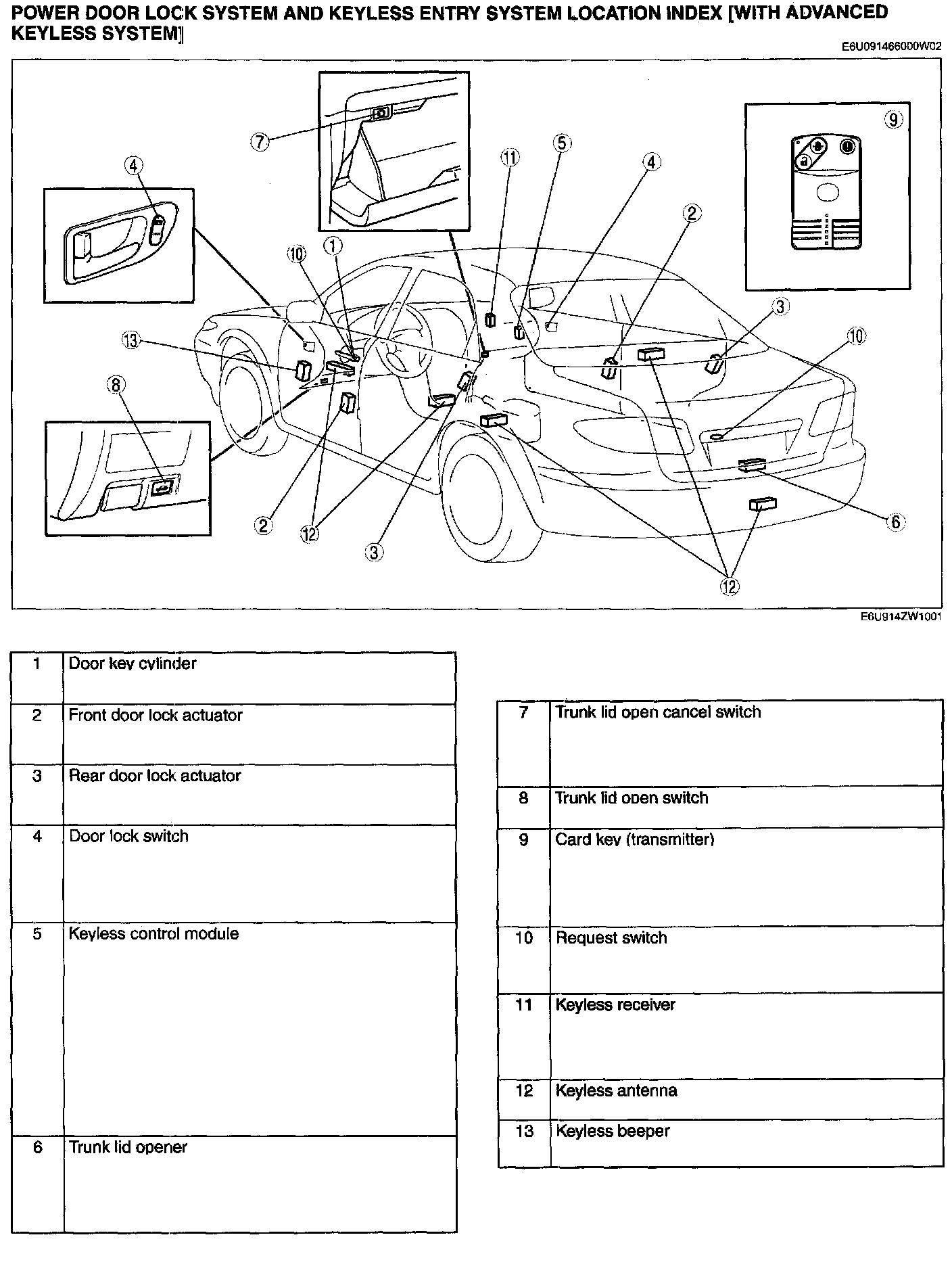 Power Door Lock System And Keyless Entry Location Index [With Advanced Keyless System]: