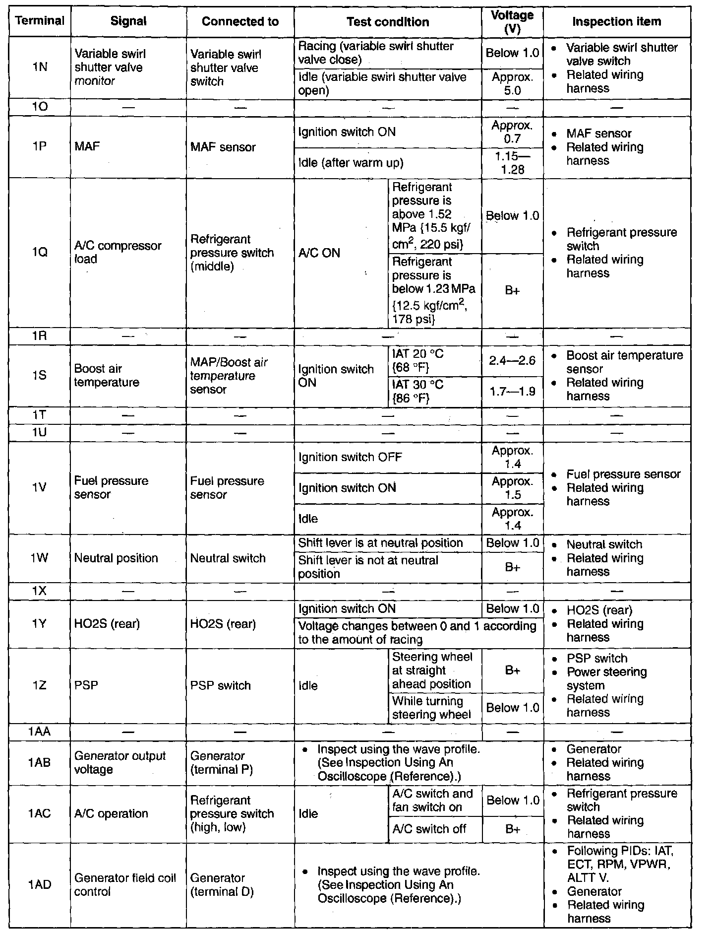 Terminal Voltage Table(Reference) - Terminal(1N-1AD):