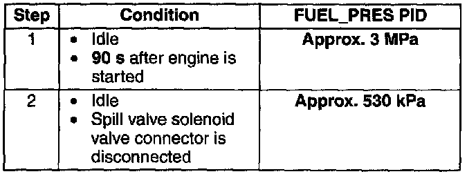 5. After warming up the engine, verify that the FUEL_PRES PID is at the standard value under the following conditions.