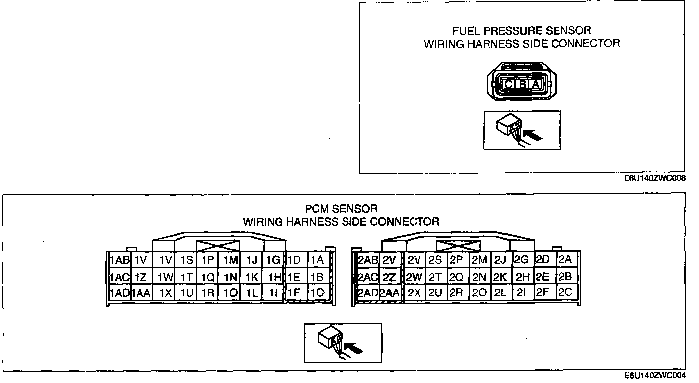 - Fuel pressure sensor terminal C and PCM terminal 2K