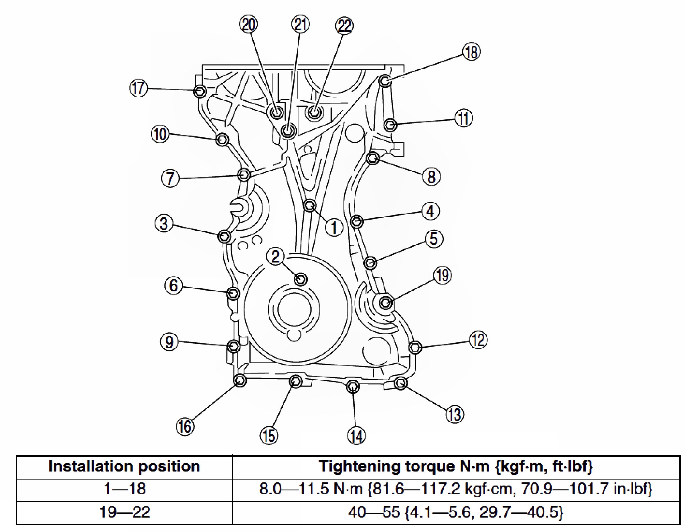 Tighten the engine front cover installation bolts in the order shown in the figure.