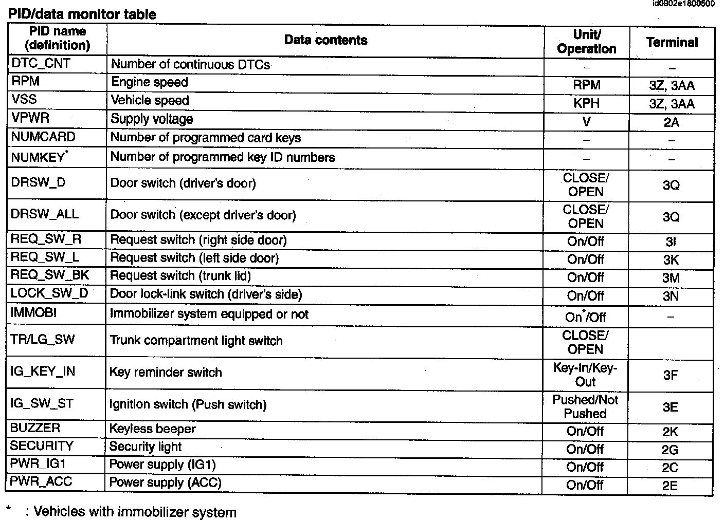 PID/Data Monitor Table[Advanced Keyless System]