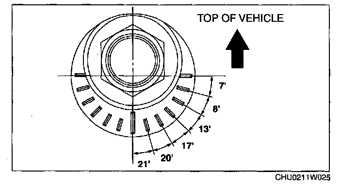 1. Loosen the fixing nut of the adjusting cam bolt (front lower arm front side).