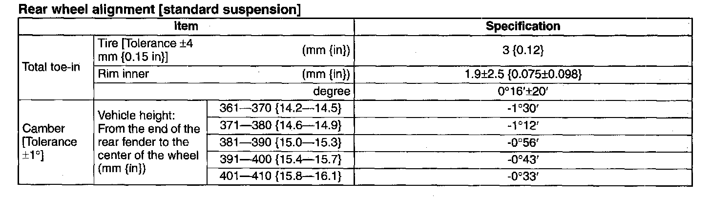 Specification (Unloaded Condition)Rear Wheel Alignment [Standard Suspension]: