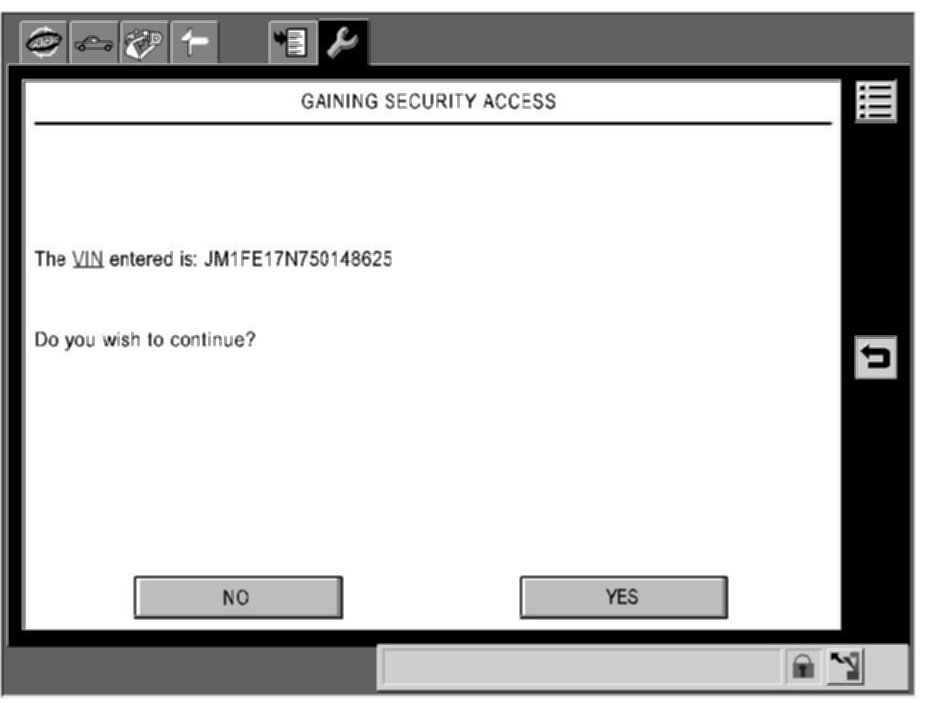 ^ If displayed VIN is not appropriate, choose "NO" and enter a correct VIN on the next screen.