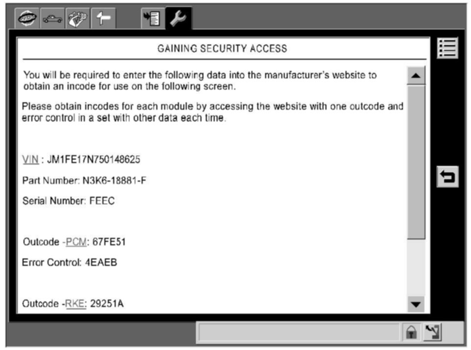 ^ In this sample, IDS/PDS tries to access PCM and RKE. In this case, you are required to provide VIN, Part Number and Serial Number shown on the screen and Outcode and Error Control for each module to obtain Incode for each module.