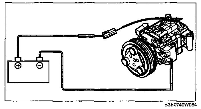 MAGNETIC CLUTCH INSPECTION[LF, L3]1. Connect battery positive voltage to magnetic clutch terminal A and the A/C compressor body to ground.