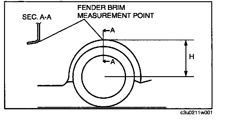 7. Measure height H from the center of the wheel to the fender brim.