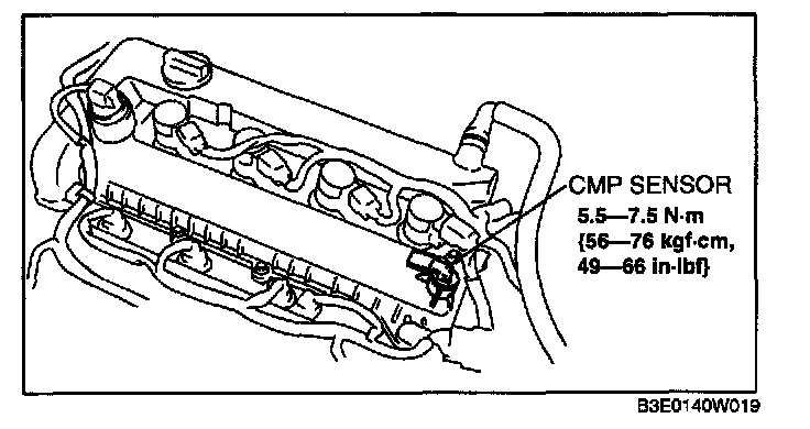 CAUTION : When replacing the CMP sensor, make sure there is no foreign material on it such as metal shavings. If it is installed with foreign material, the sensor output signal will malfunction resulting from fluctuation in magnetic flux and cause a deterioration in engine control.
