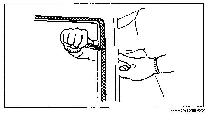 NOTE: For the areas of the sealant that are difficult to cut, use the piano wire and follow the procedure under "Reusing Rear Window Glass".