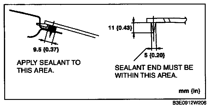 2. If the sealant has come off completely in any one place, apply some primer after degreasing, and allow it to dry for approx. 30 min. Then apply a 2 mm (0.08 in) thickness of sealant.