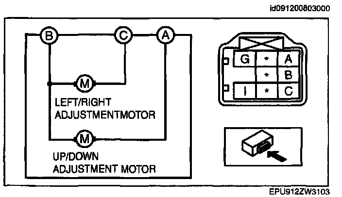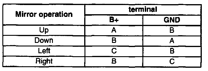 POWER OUTER MIRROR INSPECTION1. Apply battery positive voltage to the power outer mirror terminals and inspect the operation of the power outer mirror.