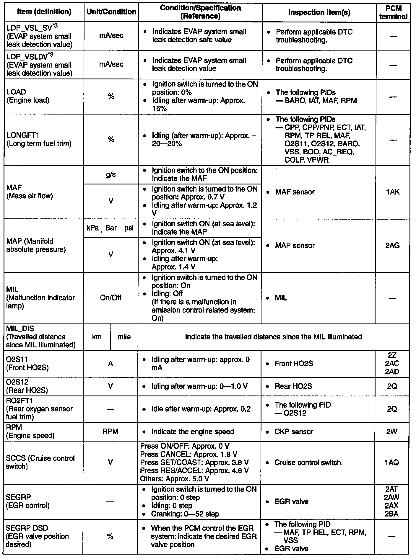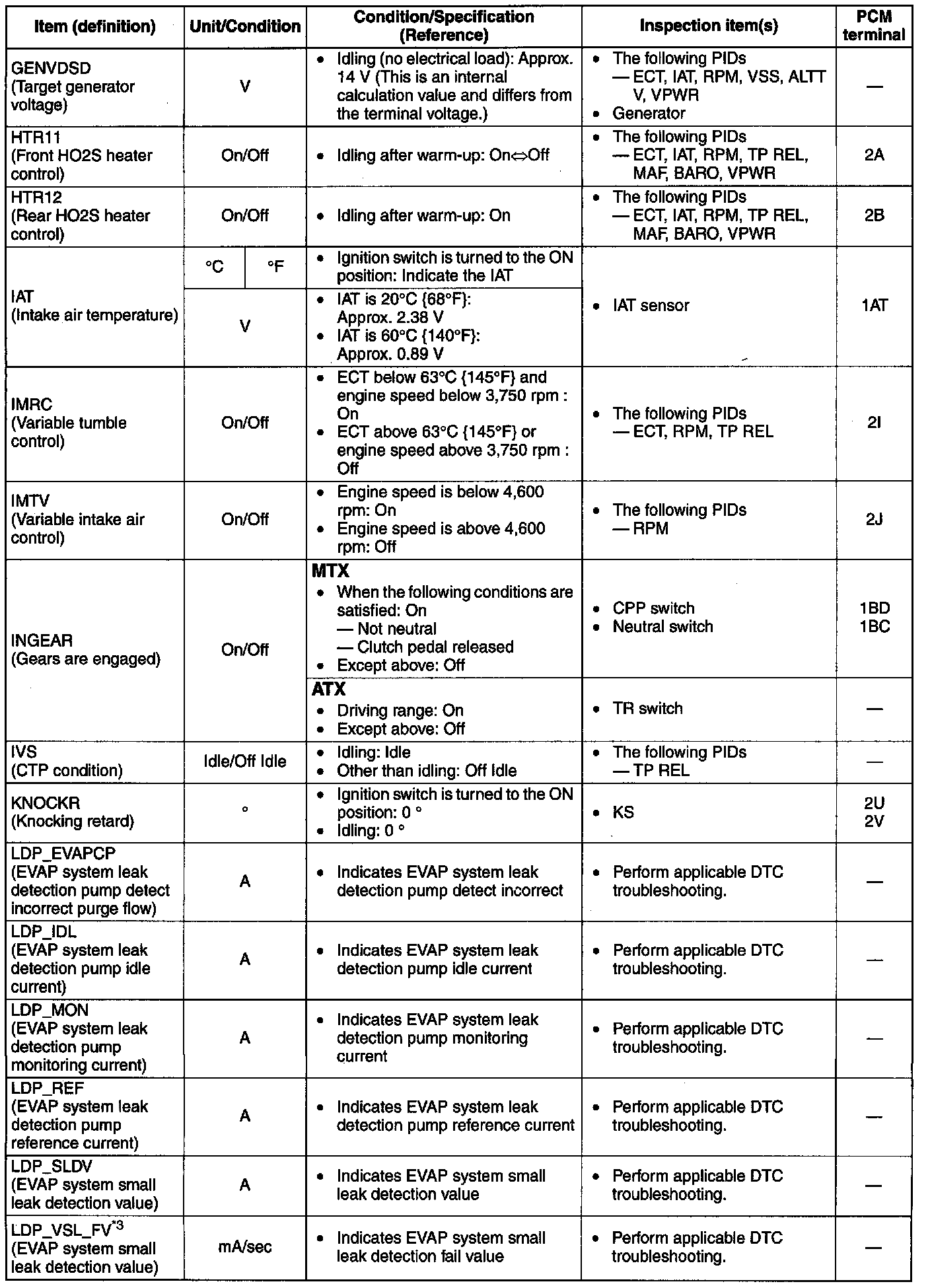 - The PID/DATA MONITOR function monitors the calculated value of the input/output signals in the PCM. Therefore, an output device malfunction is not directly indicated as a malfunction of the monitored value for the output device. If a monitored value of an output device is out of specification, inspect the monitored value of the input device related to the output control.